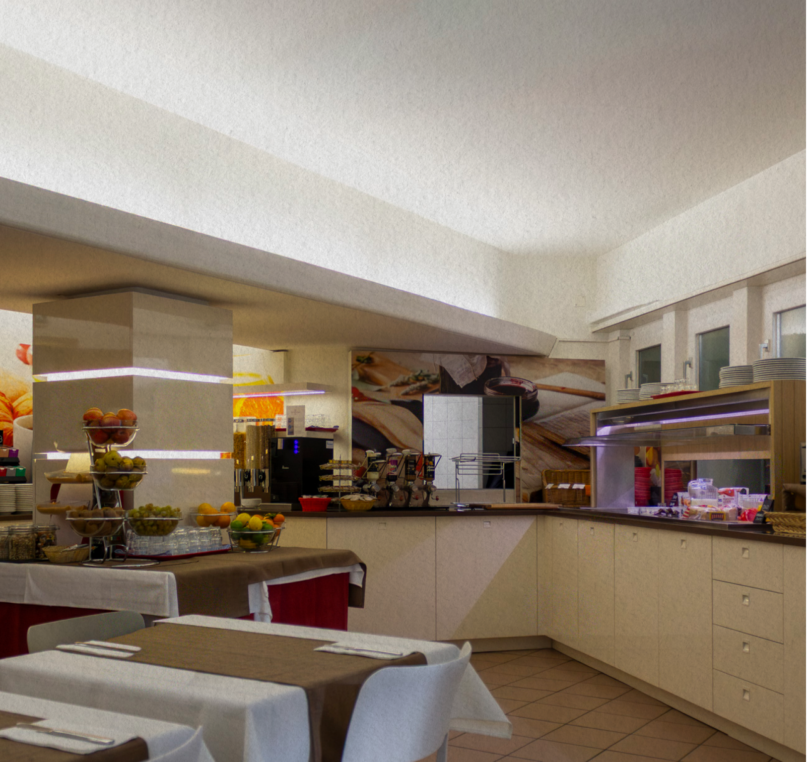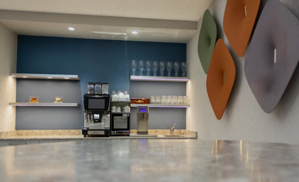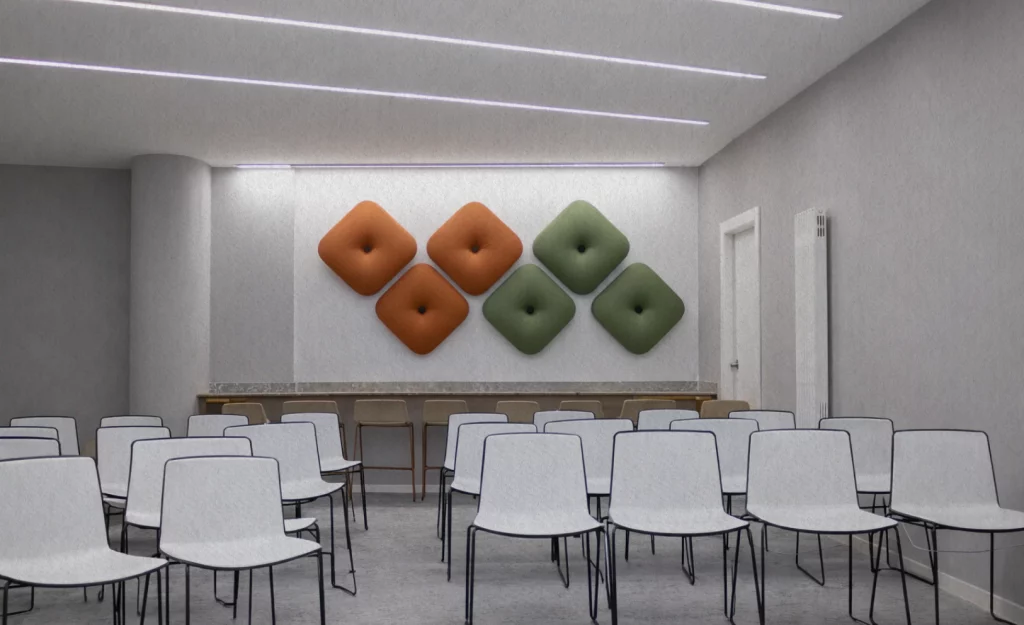 Gli spazi comuni includono una sala colazione, una palestra e aree coworking, ideali per accompagnare i diversi momenti della giornata.