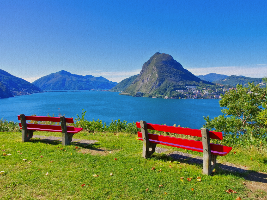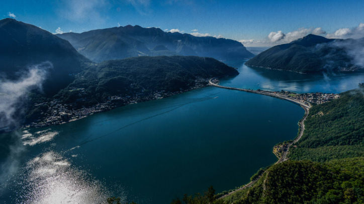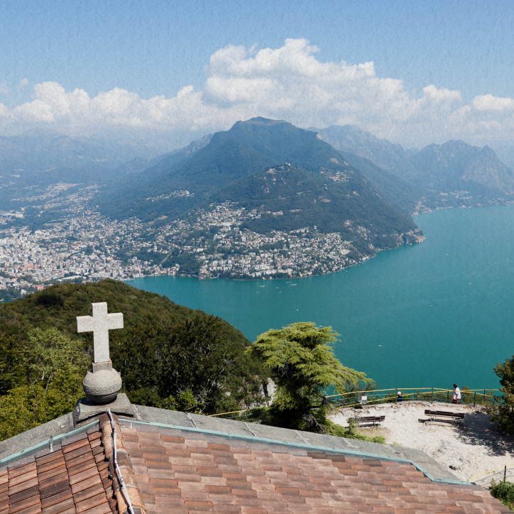 Dal Monte San Salvatore la vista abbraccia il Lago di Lugano in tutta la sua estensione, con le sue acque profonde che catturano i riflessi del cielo. Sulla riva opposta si ergono colline, paesi e montagne, creando un quadro naturale che cambia luce e atmosfera a ogni ora del giorno.